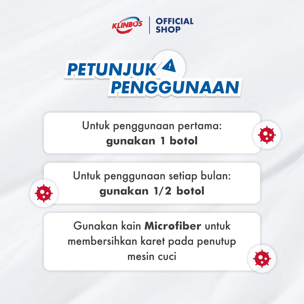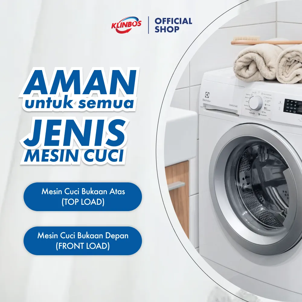 (KLINBOS PEMBERSIH MESIN CUCI adalah serbuk pembersih mesin cuci yang diformulasikan untuk membersihkan kotoran dan bakteri yang menempel pada tabung mesin cuci anda. Efektif untuk menghilangkan bau apek serta membuat hasil cucian anda menjadi lebih bersih dan segar.)